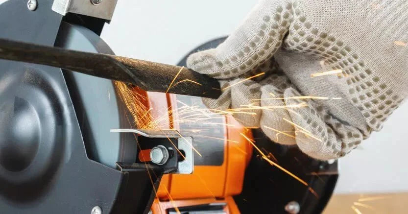 Pour commencer, je vous conseille vivement de porter des lunettes de protection. Puis, prenez votre meuleuse ou votre lime et passez-la soigneusement le long du tranchant de la lame. Il est crucial de suivre l'angle existant de la lame. Cette étape requiert une attention particulière pour ne pas trop affiner la lame, ce qui pourrait la rendre trop fragile et susceptible de s'émousser rapidement.