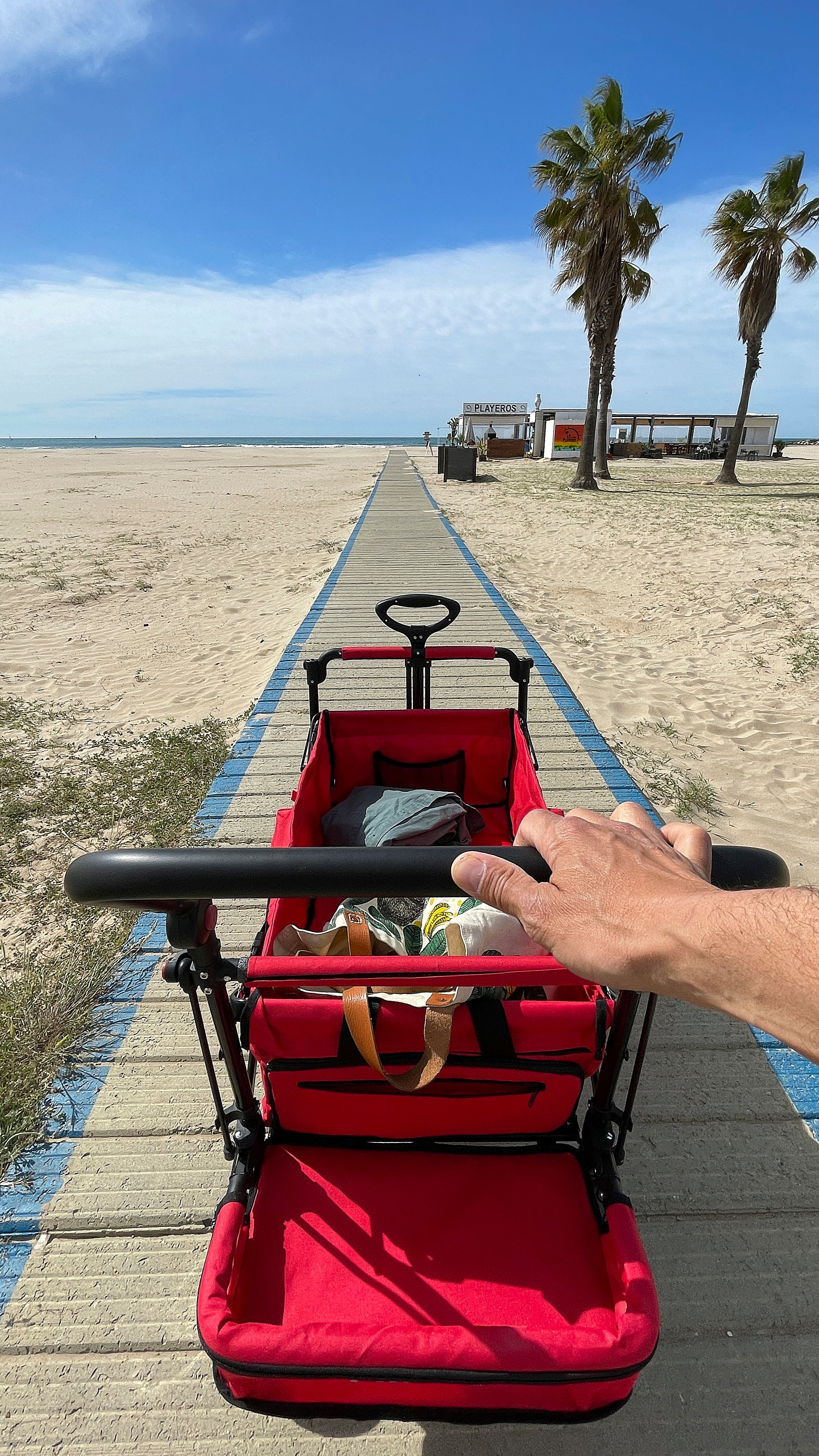 Dank des flexiblen Griffs lässt sich der Bollerwagen mühelos und komfortabel ziehen. Zum Verstauen kann der Griff einfach eingerastet werden, sodass er nicht im Weg ist. Der verstellbare Schiebegriff bietet zudem eine weitere bequeme Option für den Transport.