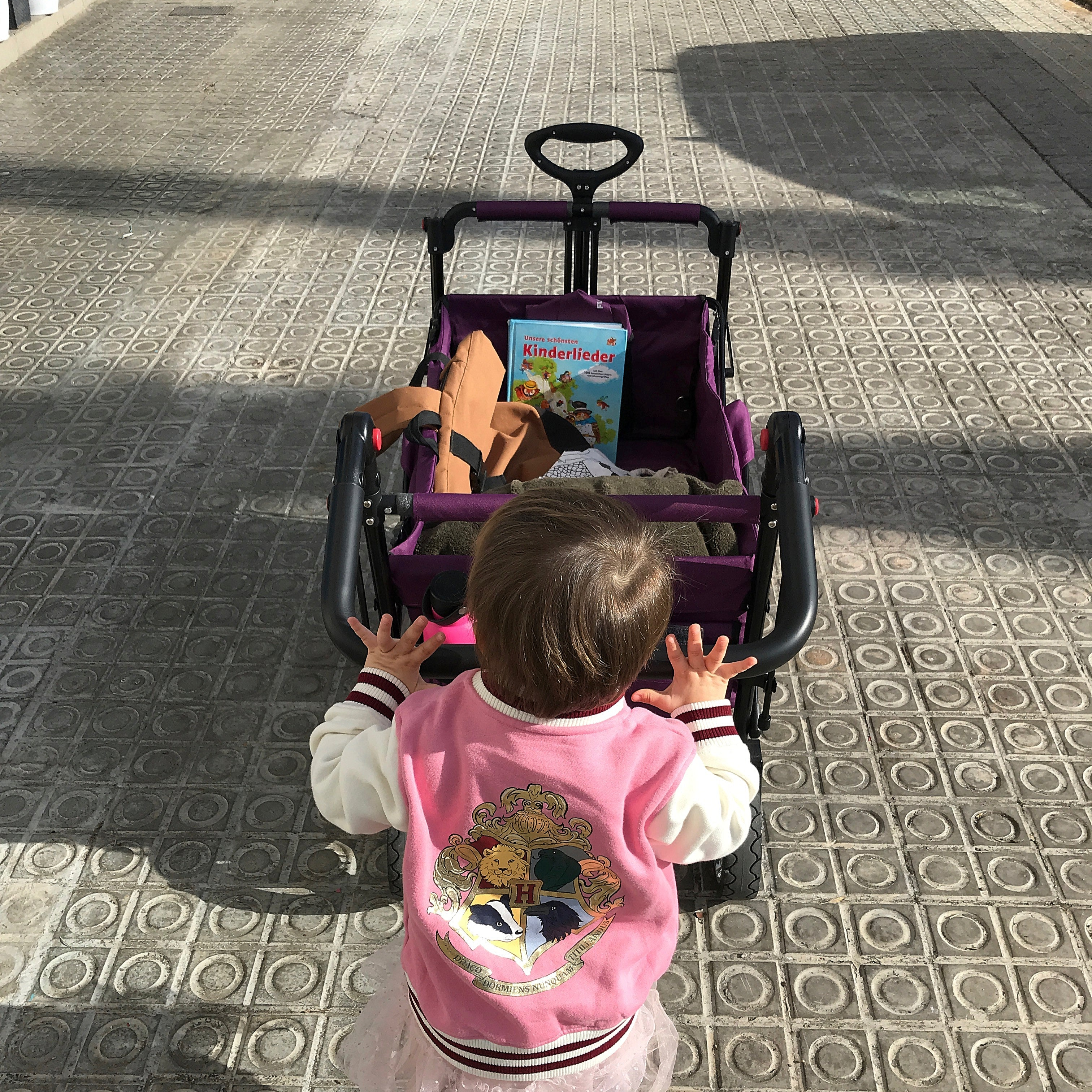 Le chariot Easy Cruiser offre confort et protection grâce à son toit pare-soleil anti-UV et à sa poignée supplémentaire – idéal pour transporter malin et en toute simplicité lors de vos déplacements.
