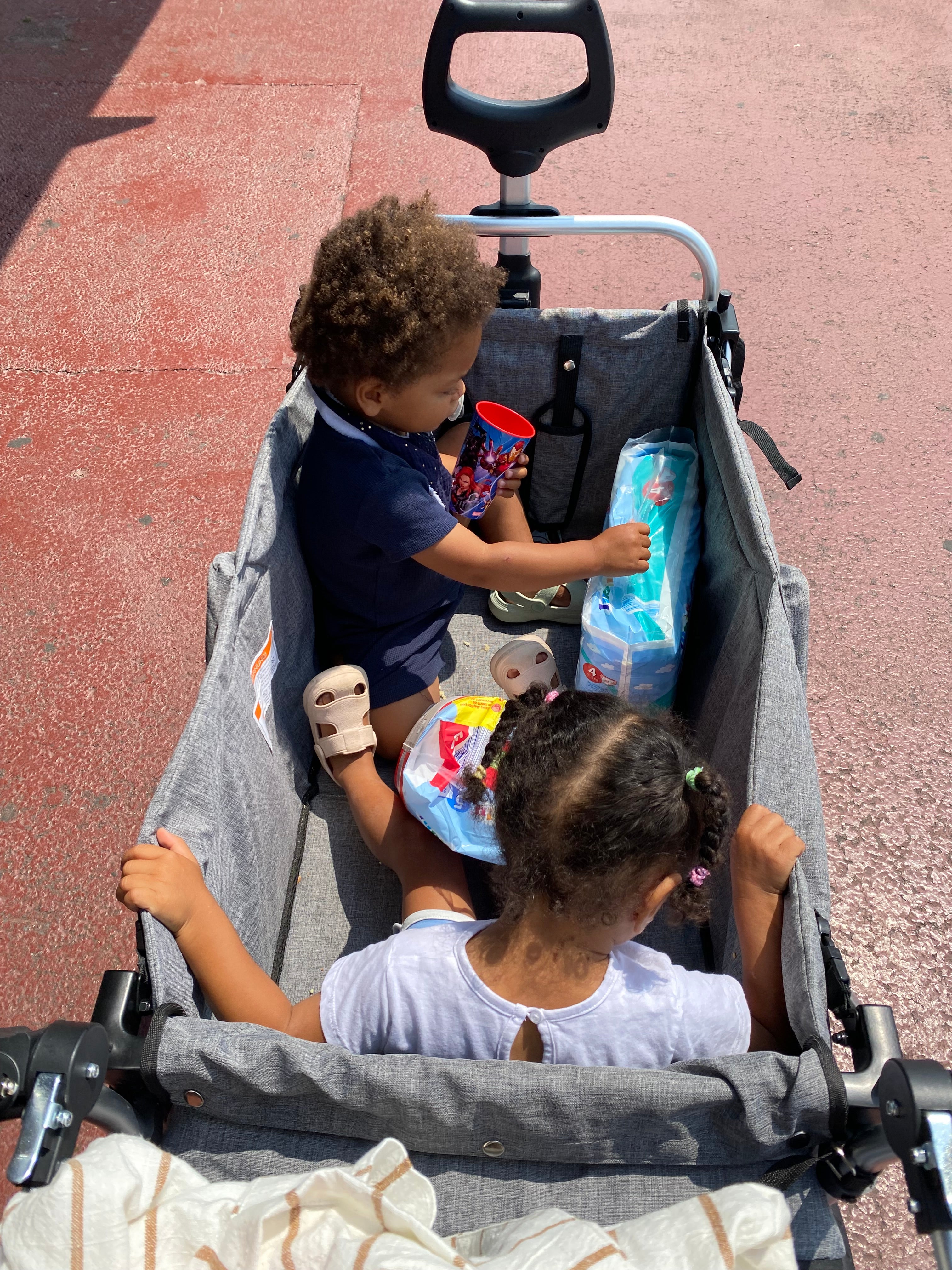 Un 2 en 1 qui se transforme en mini cabriolet rusé pour toutes vos sorties en famille.