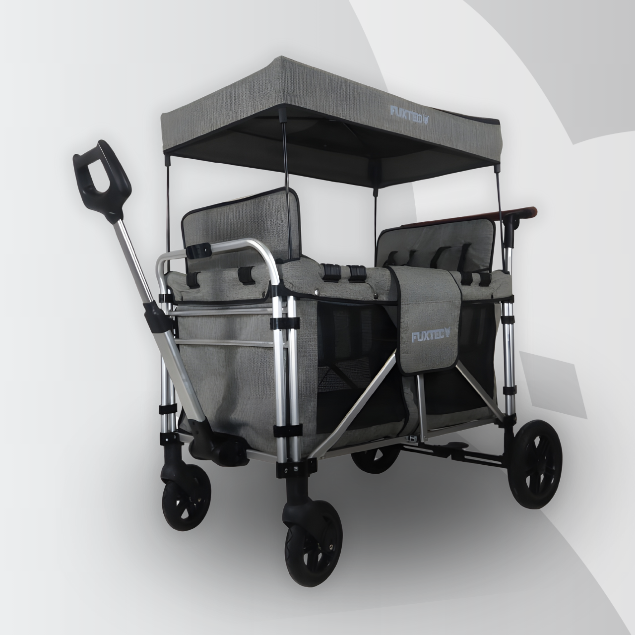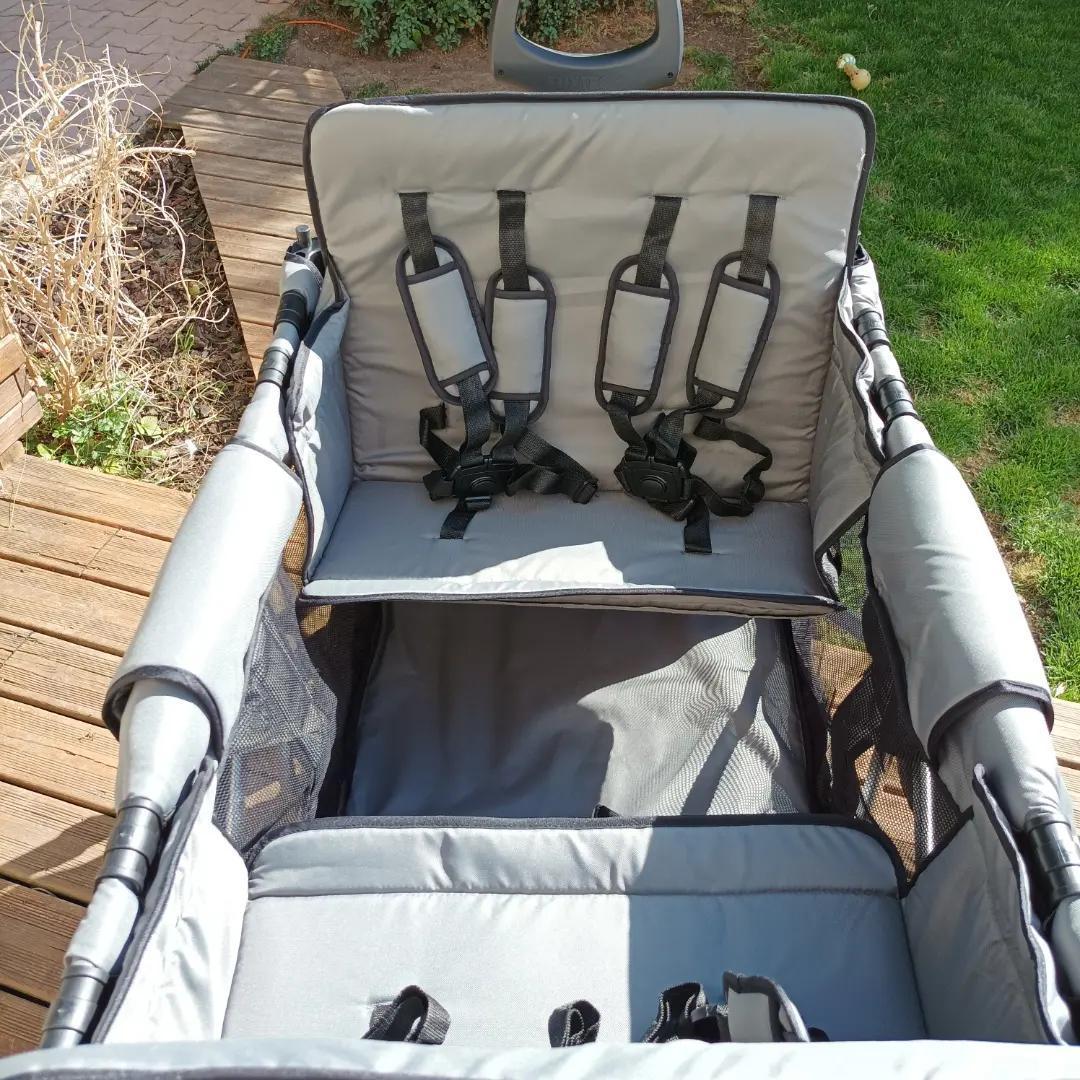Le nouveau chariot FUXTEC le Family Cruiser, le chariot aux dimensions XL ! Conçu pour 4 enfants, avec 4 ceintures de sécurité intégrées et deux rangées de sièges incluses ! Idéal pour les familles nombreuses jusqu'à 4 enfants ! Chariot homologué EN-1888-1 +A1 et EN-1888-2 +A1.